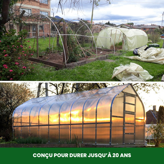 Les serres traditionnelles peuvent se fissurer, casser ou s'abîmer avec le temps, entraînant des coûts de réparation ou de remplacement fréquents. Avec nos serres en polycarbonate, fini les mauvaises surprises !