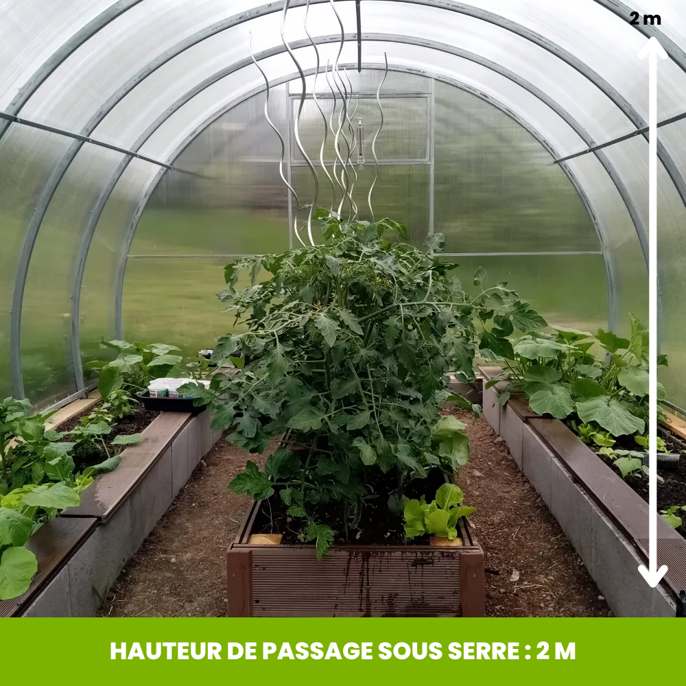 Besoin de plus d’espace ? Grâce à nos extensions de 2 mètres, ajoutez facilement des modules d’extension pour agrandir votre serre selon vos besoins, sans remplacer toute la structure.